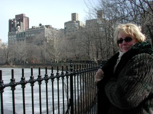 Foundry owner Sharon Hertzler shown next to the new powdercoated iron fence - close to a mile long - that surrounds the Central Park reservoir in New York City.